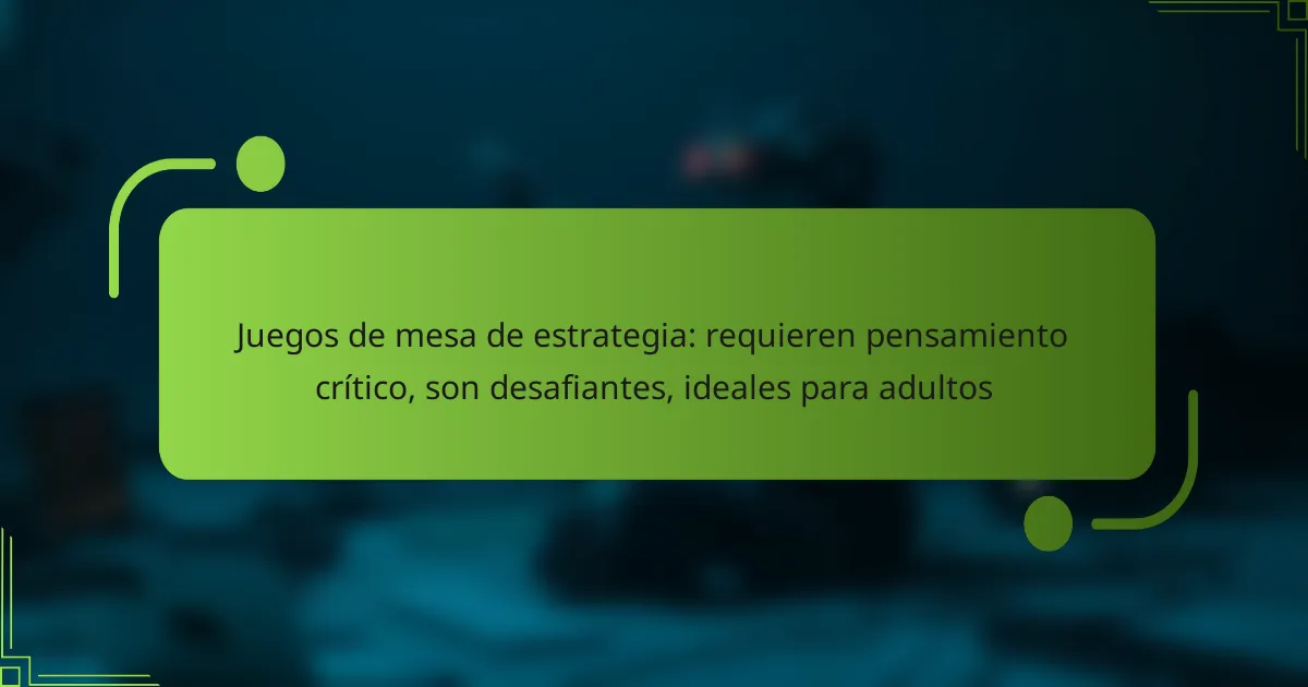 Los juegos de mesa de estrategia son aquellos que requieren planificación, toma de decisiones y pensamiento crítico para alcanzar un objetivo. Estos juegos suelen ser desafiantes y están diseñados principalmente para adultos, fomentando la competencia y la interacción social.
